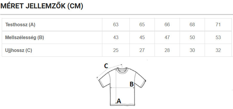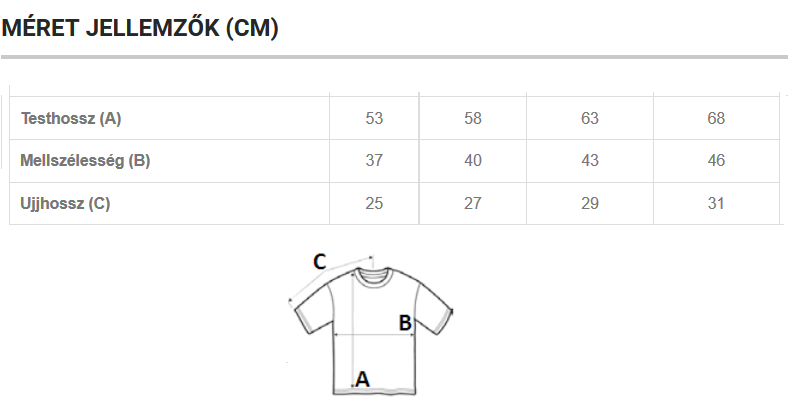 - Választott pólóméret (egyértelműen feltüntetve melyik táblázatból választottál)